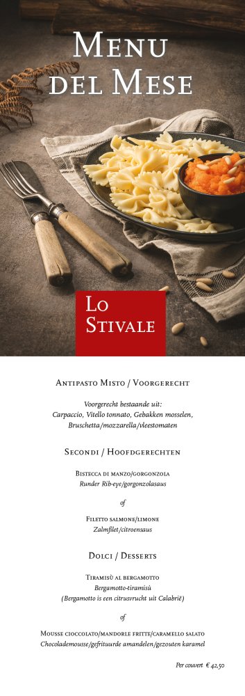 2 april - 3 mei Italiaans restaurant Lo Stivale