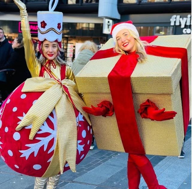 Laat je meevoeren door de magie van onze schitterende kerstparade! Sierlijke danseressen bewegen synchroon op vrolijke kerstmuziek, terwijl de levende kerstbal en het levende cadeau met het publiek dansen en knuffels uitdelen. De parade wordt afgesloten door twee indrukwekkende notenkrakers van wel 3,5 meter hoog, een adembenemend hoogtepunt van dit gezellige kerstfeest!