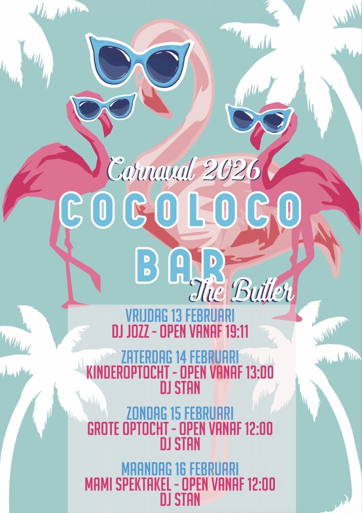 Vier dagen carnaval in The Butler. Het grand-café wordt ook dit keer weer omgetoverd tot de gezellige Cocoloco Bar.