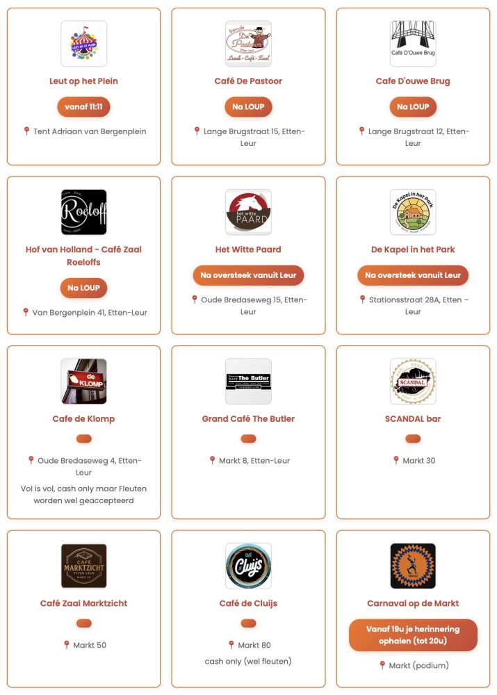De start van de tocht is op 14 februari om 12:00 uur in de tent van Leut op ut Plein (tent open om 11.11 uur). Daar ontvang je jouw stempelkaart en kan het feest beginnen!