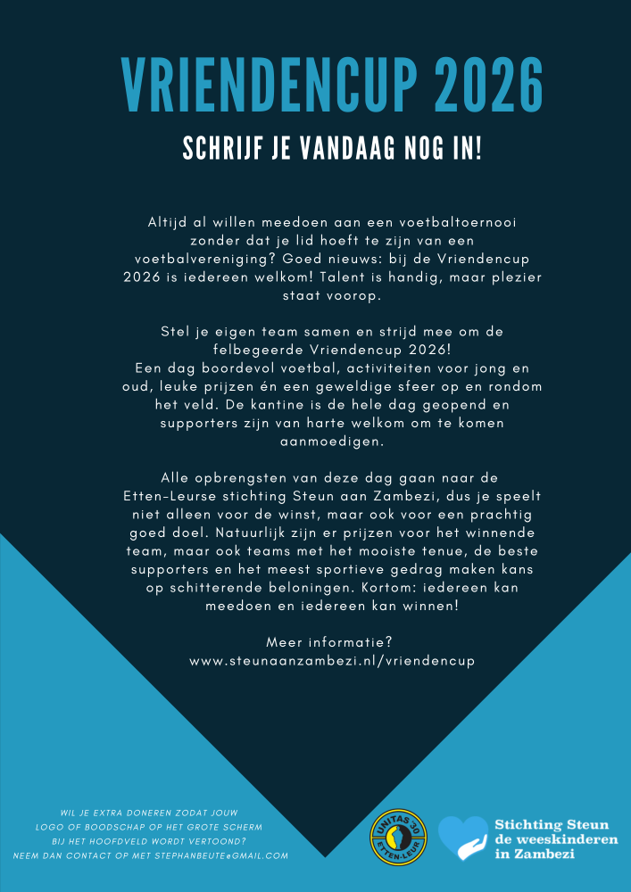 Schrijf je team snel in via: www.steunaanzambezi.nl/vriendencup