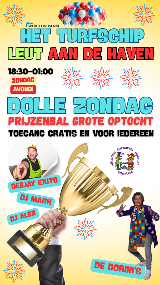 Op zondag 15 februari is het Dolle Zondag en Prijzenbal in Het Turfschip. Gekoppeld is namelijk de prijsuitreiking van de Grote Optocht.