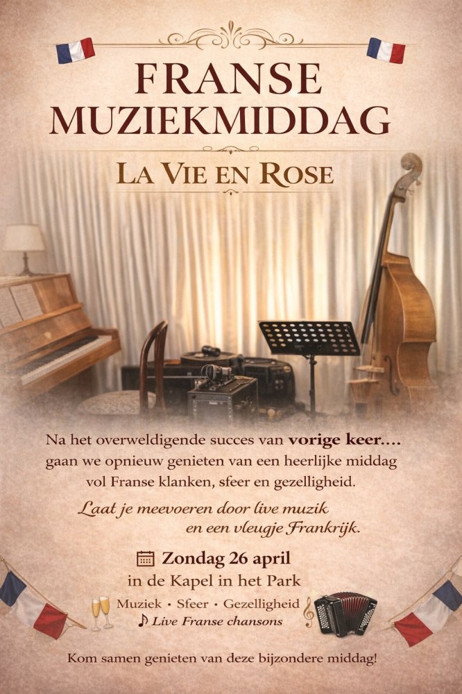 Zondagmiddag 26 april muziekmiddag met - La Vie en Rose.