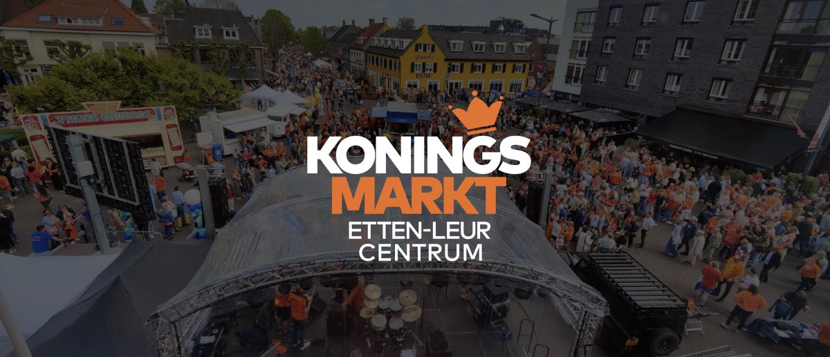 'Stichting Van alle markten thuis' houdt ook dit jaar weer de Koningsmarkt, op maandag 27 april van 8.00-17.00 uur. Een particuliere kleedjesmarkt in het centrum van Etten-Leur. Groter dan ooit, met zo'n 450 grondplaatsen!