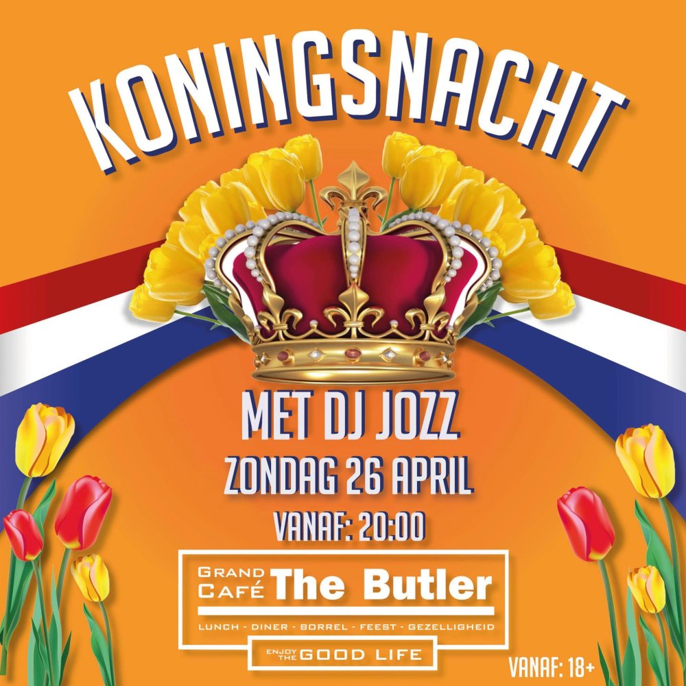 Zin in een feestje? Grand-Café The Butler geeft er eentje: Koningsnacht 26 april met DJ JOZZ.