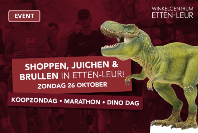 Durf jij oog in oog te staan met een reusachtige, levensechte Tyrannosaurus Rex? Op deze speciale koopzondag verandert Winkelcentrum Etten-Leur in een prehistorisch speelparadijs vol spanning en sensatie.