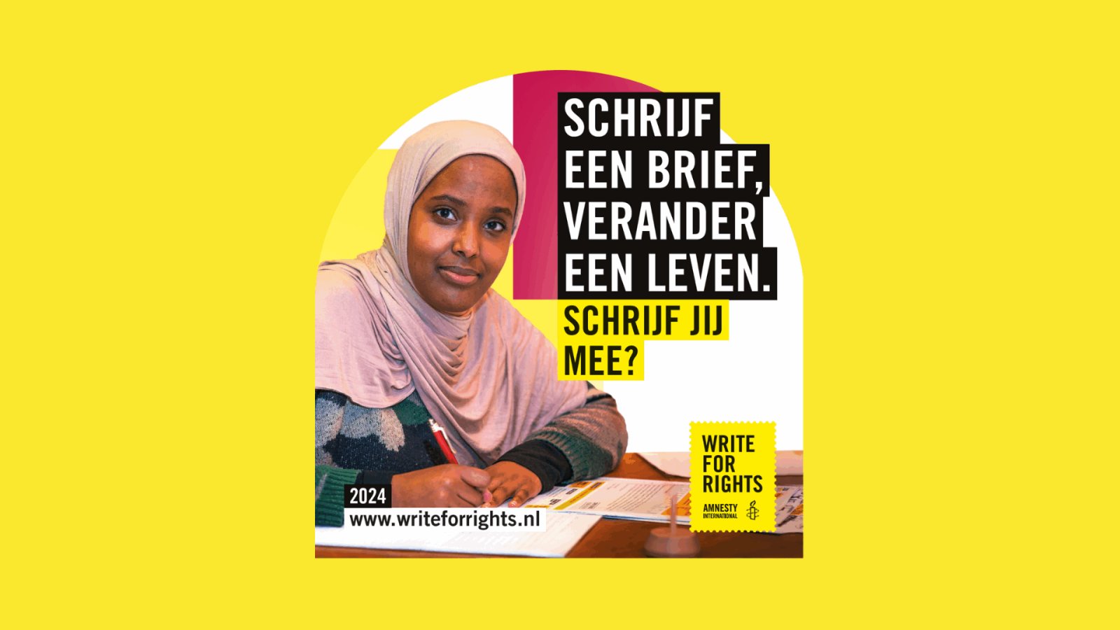 Op 10 december is het de Dag van de Mensenrechten. Rond die dag schrijven mensen over de hele wereld brieven tegen onrecht. Met Write for Rights komen we samen in actie voor dappere mensen die het slachtoffer zijn van onrecht. Ze zitten in de gevangenis, worden vervolgd of hebben te maken met discriminatie. Omdat ze opkwamen voor hun rechten, hun mening uitten, of gewoon om wie ze zijn.