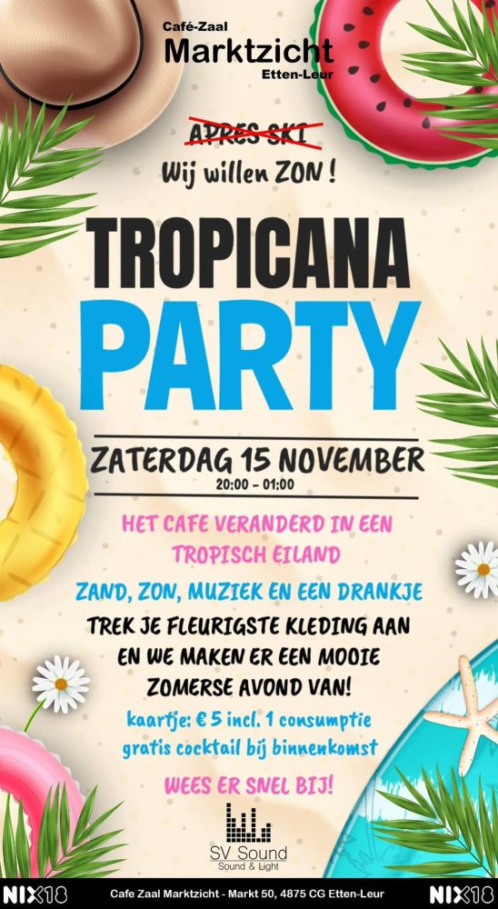Op 15 november wordt café Marktzicht in Etten-Leur omgetoverd tot een tropisch strand. Lees verder