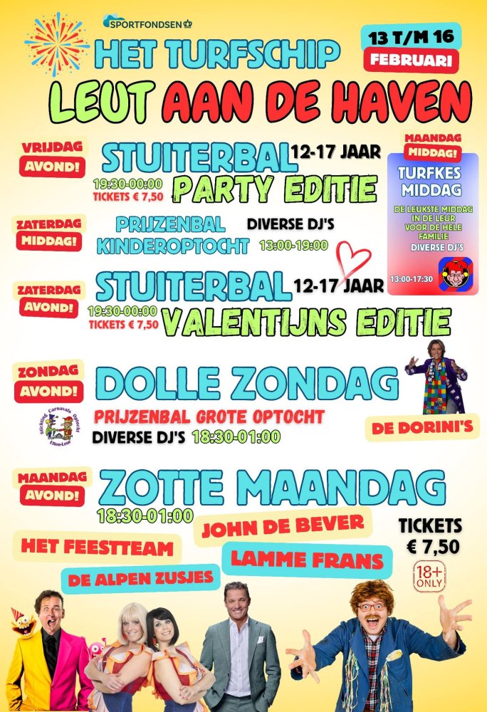 - Onder het motto Leut aan de Haven presenteert Het Turfschip dit jaar een zeer uitgebreid programma! Voor een aantal activiteiten zijn de kaarten alvast in de verkoop. Tickets>>