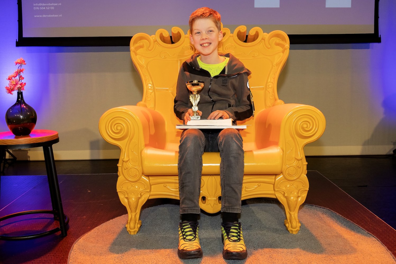Vrijdagochtend 6 februari was het gezellig druk in zaal De Justus. Klasgenoten van de voorlezers hadden spandoeken mee en maakten veel geluid om hun klasgenoot aan te moedigen. In totaal lazen twaalf leerlingen uit groep 7 en 8 van basisscholen uit Etten-Leur voor aan het publiek.