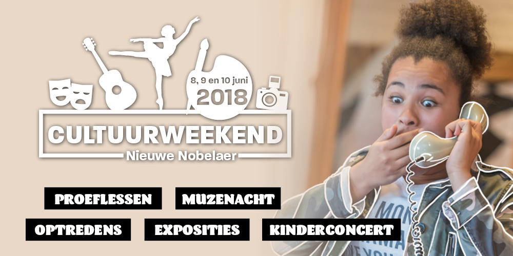Nieuwe Nobelaer bubbelt en bruist tijdens het Cultuurweekend! Vrijdag 8, zaterdag 9 en zondag 10 juni presenteren leerlingen en cursisten wat ze het afgelopen jaar geleerd hebben. Daarnaast is er tijdens dit weekend een doorlopende proeverij van bestaande en nieuwe cursussen die in seizoen 18-19 gepland staan. Bezoekers maken kennis met docenten, ontdekken hun creatieve talent tijdens één van de workshops of open lessen én kunnen genieten van diverse optredens. In alle hoeken en gaten van het gebouw is iets te doen. Deelname aan activiteiten en toegang tot optredens zijn tijdens het Cultuurweekend gratis.