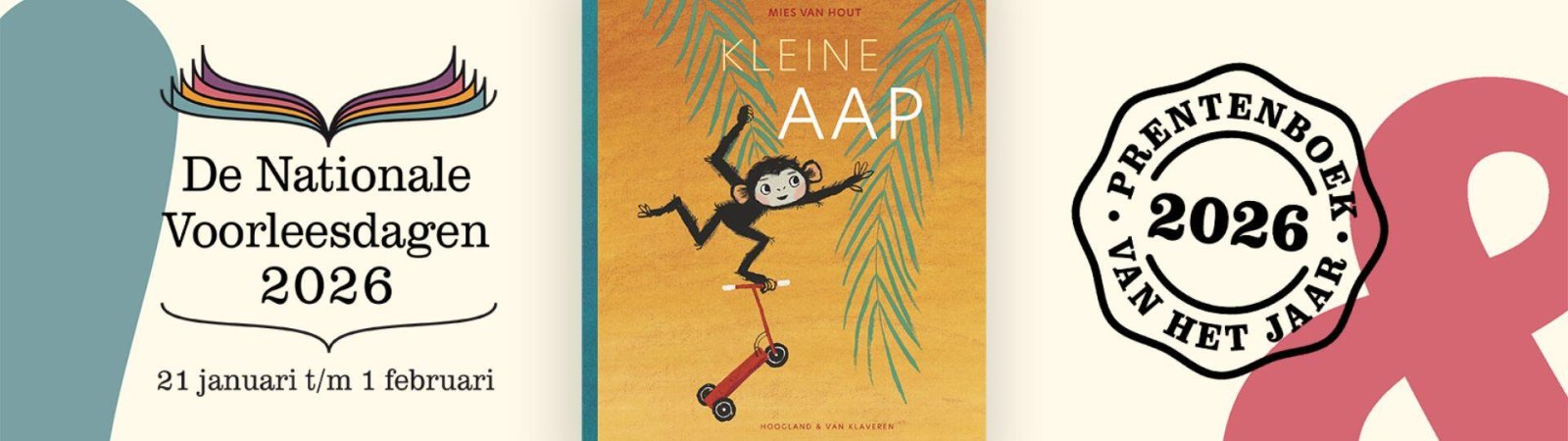 De Nationale Voorleesdagen worden woensdag 21 januari om 11:00 uur feestelijk geopend met een speciale editie van Voorlezen met muziek. In de huiskamer van De Nobelaer lezen Kirsten en Pieter voor uit Kleine Aap. Het prentenboek, geschreven door Mies van Hout, gaat over Kleine Aap die zoiets leuks heeft, dat ze het aan iedereen wil vertellen. Voor dag en dauw gaat ze op stap, helemaal in haar eentje. En steeds verder van huis, want niemand wil echt naar haar luisteren. Of toch wel?